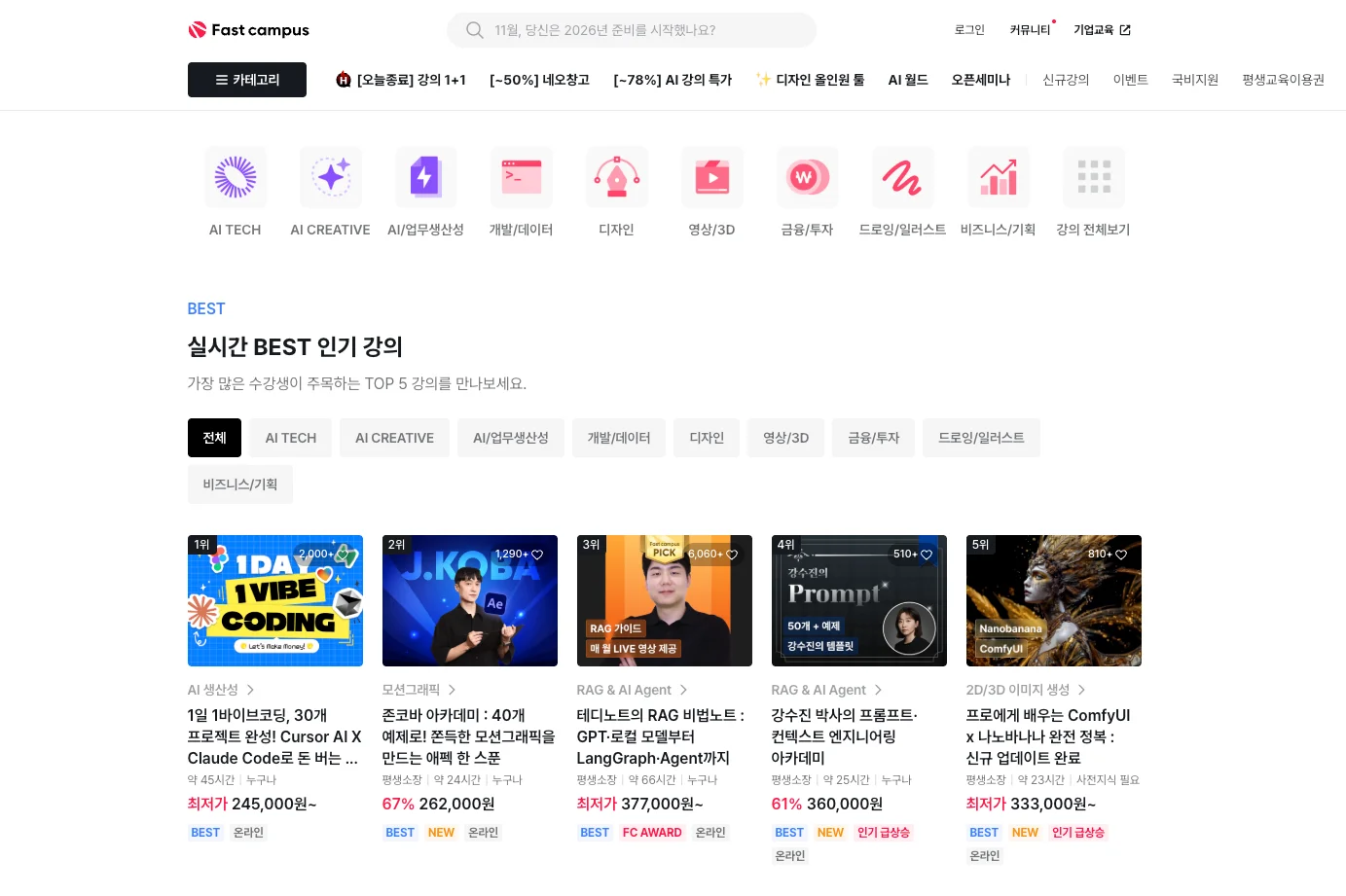 패스트캠퍼스 홈페이지