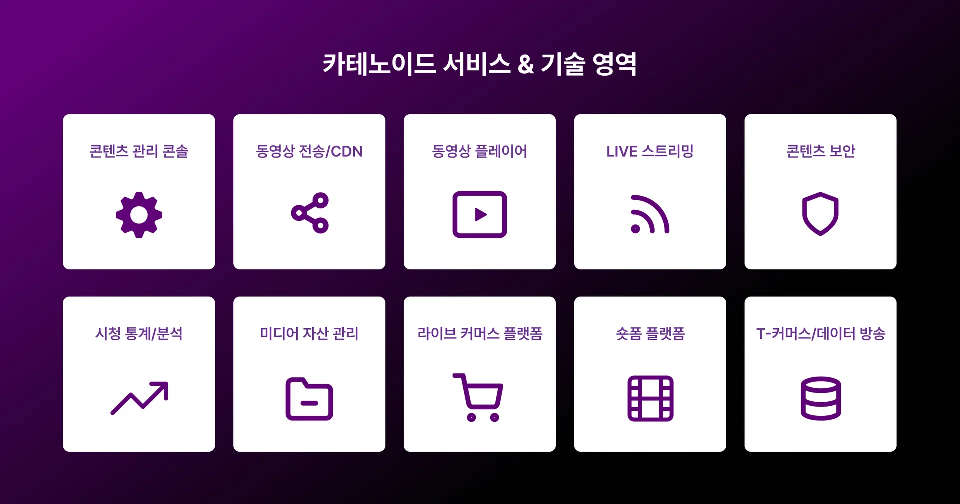 카테노이드는 단순 VOD 스트리밍에서 나아가 라이브 스트리밍과 노코드 영상 솔루션 등 고객의 상황과 니즈에 맞춰가고 있는데요. 여기에 DRM 보안, 디바이스별 최적화, 통계 기능까지 모두 포함된 그야말로 ‘동영상 서비스의 올인원 솔루션’을 구축해나가고 있습니다.
