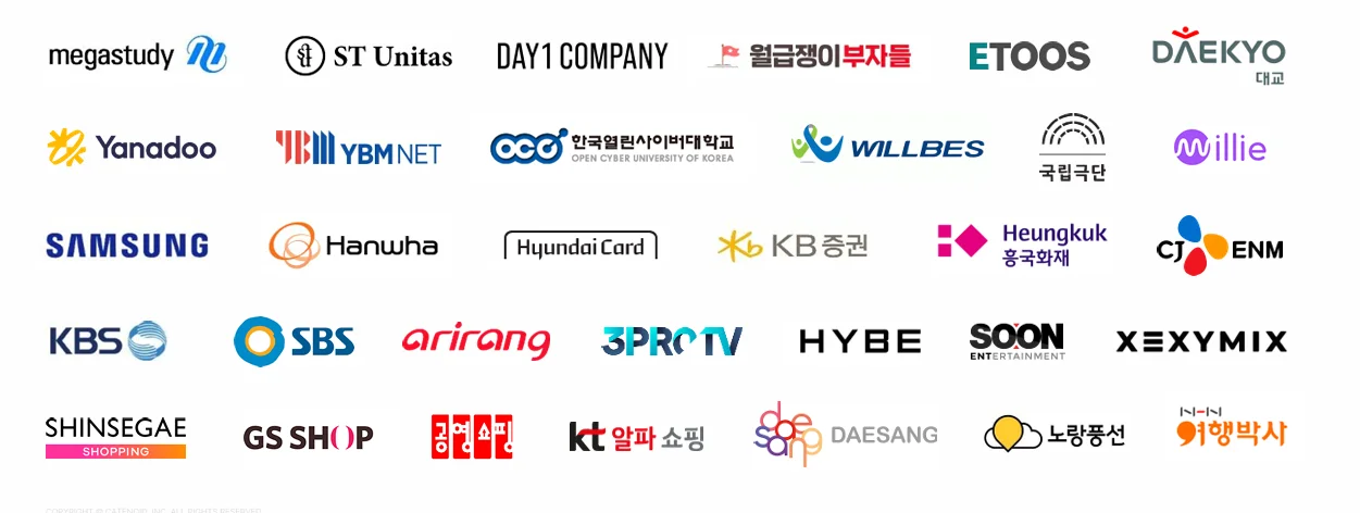 카테노이드의 고객들을 살펴보면 정말 다양한 업종에서 찾고 있다는 사실을 알 수 있습니다. 더 이상 영상 서비스는 방송사나 영상 제작사만의 이야기가 아닌 것이죠.