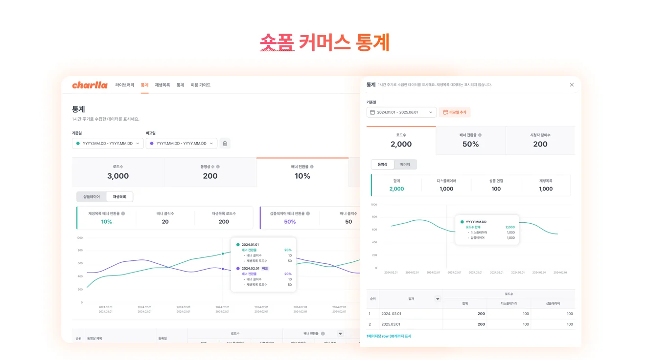 영상을 넣는 것 만큼이나 중요한 것은 재생 수, 로드 수, 클릭률이나 체류 시간, 전환율을 실무자가 직접 확인하고 관리하는 일일텐데요. 찰나에서는 숏폼 노출 수, 상세페이지 전환율, 좋아요 수까지 확인 할 수 있습니다. SNS에 노출하던 숏폼도 우리 자사몰에서 어떤 성과를 만드는지 직접 눈으로 확인할 수 있죠!