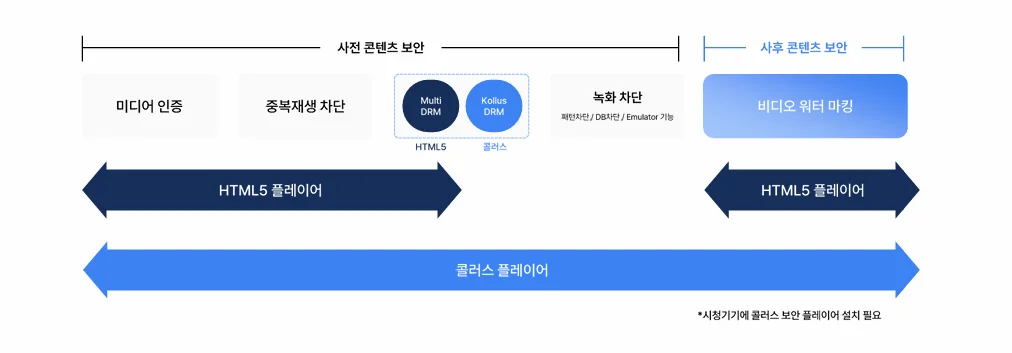 특히 교육 시장 고객사들은 강의 콘텐츠의 불법 복제나 무단 공유에 민감하기 때문에, 이런 보안 체계가 큰 신뢰 요인이 됩니다. 저희는 캡처 방지와 사후 추적까지 가능한 기능을 제공해 콘텐츠를 안전하게 보호하고 있어요. 그렇기 때문에 고객사 입장에서는 안심하고 콜러스 위에서 서비스를 운영할 수 있는 환경을 구축할 수 있습니다.