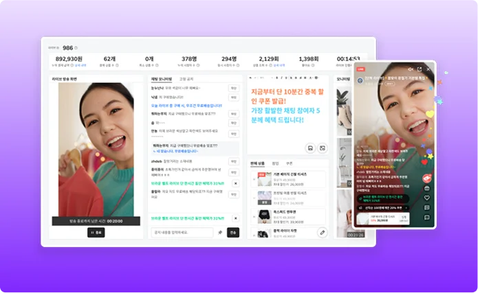방송 중 쿠폰 발급이나 깜짝 이벤트를 통해 시청자의 구매 전환을 실시간으로 유도할 수 있습니다. 이런 기능은 라이브 방송 특유의 ‘지금 사야 한다’는 긴장감을 만들어, 전환율을 높이는 데 효과적이죠.