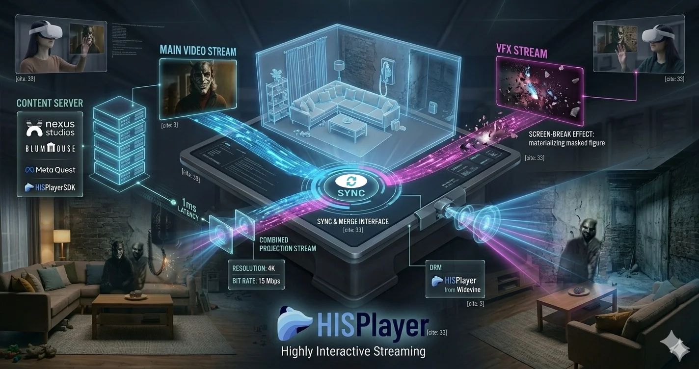 'Blumhouse Enhanced Cinema'가 선사하는 압도적인 몰입감 뒤에는 고도화된 스트리밍 메커니즘이 자리 잡고 있어요. Nexus Studios의 상상력이 사용자의 거실에서 생생하게 구현될 수 있도록 지원한 HISPlayer의 핵심 기술 스택을 살펴볼까요?