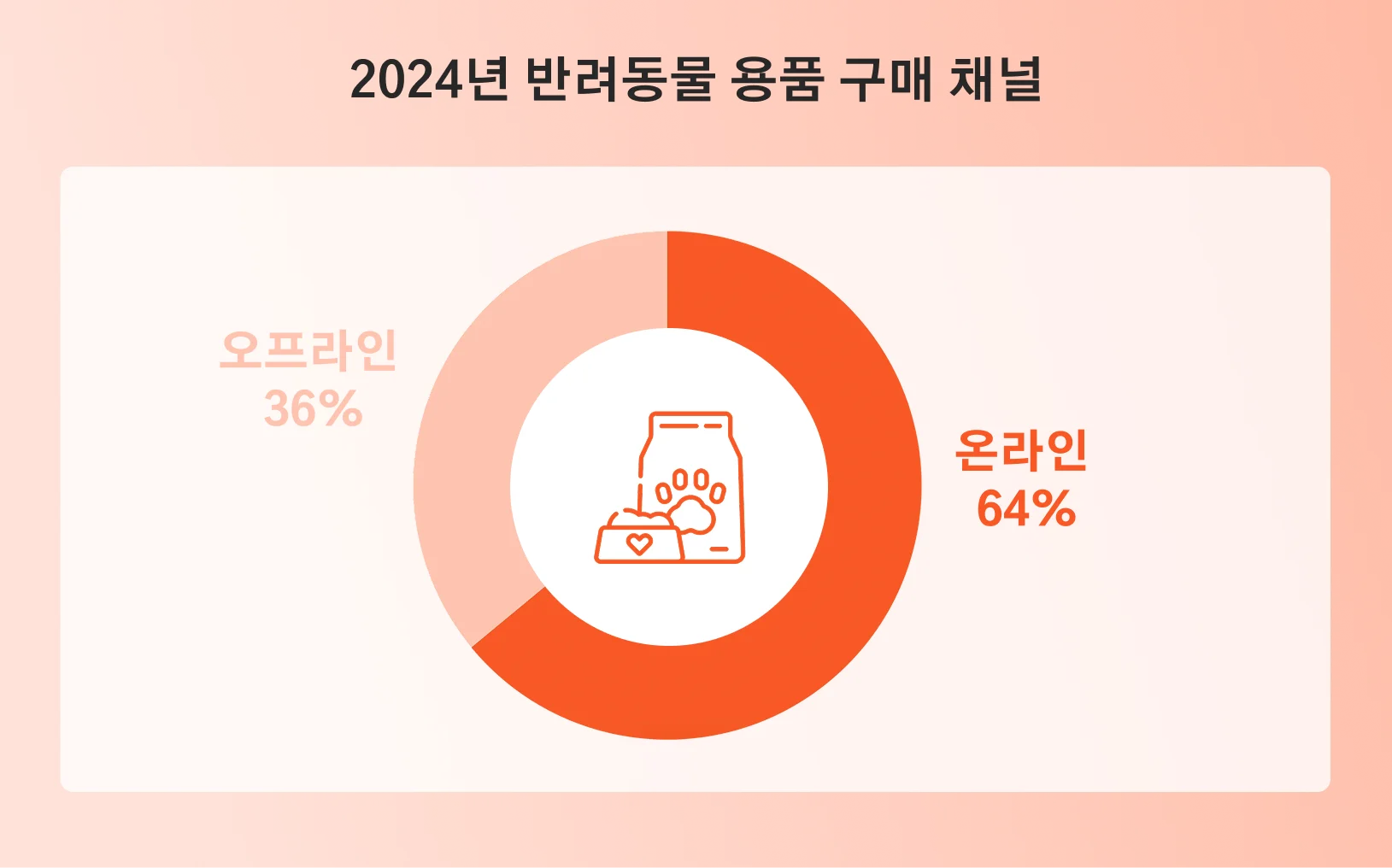 오픈서베이 조사에 따르면, 반려동물을 키우면서 한 달에 사용하는 비용은 보통 13만~16만 원 정도라고 해요. 사료·간식, 병원 진료, 미용, 장난감, 목욕용품, 의류·악세사리까지 지출 항목도 정말 다양하죠. 그런데 흥미로운 점은 이렇게 다양한 반려동물용품을 구매하면서도 오프라인 매장에서 구매하는 비율은 단 36%에 불과하다는 점이에요.